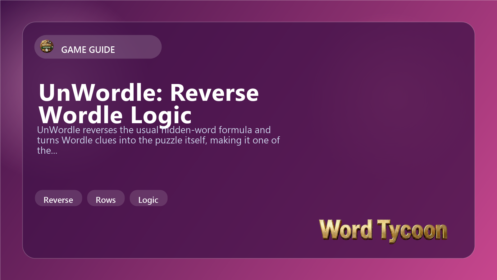Inside Word Tycoon, UnWordle gives the lineup another logic-heavy branch that still feels legible to people who know ordinary Wordle. It is the kind of game that rewards players who enjoy the rules almost as much as the answer.