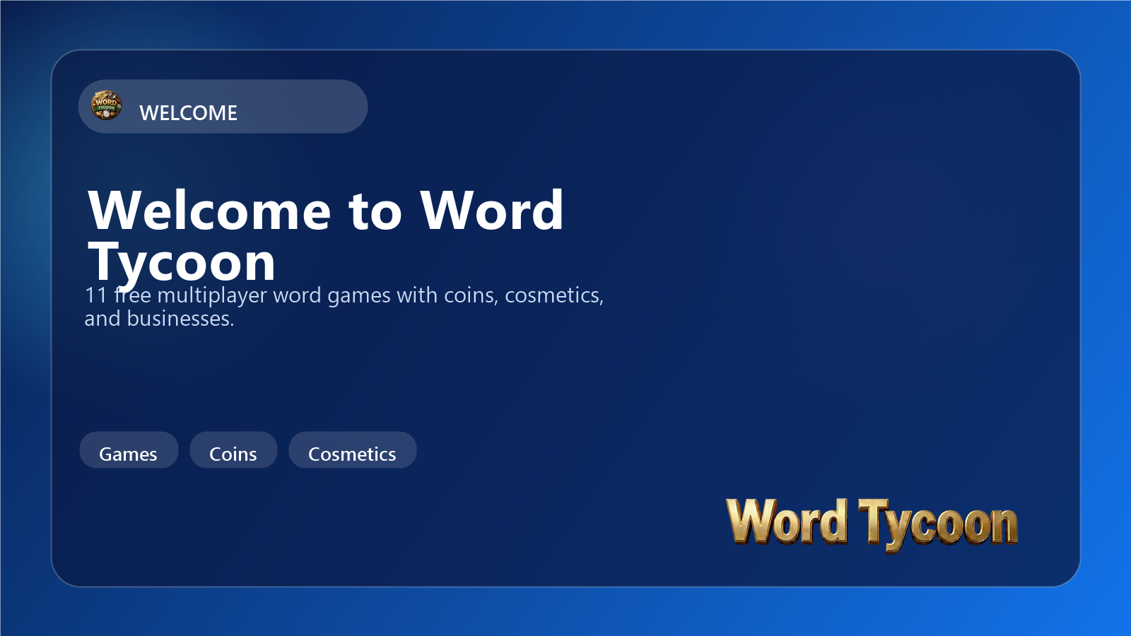 11 free multiplayer word games with coins, cosmetics, and businesses.
